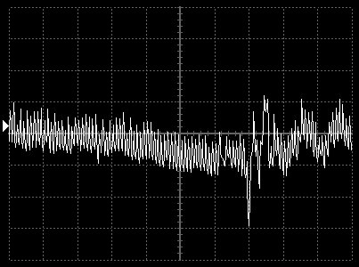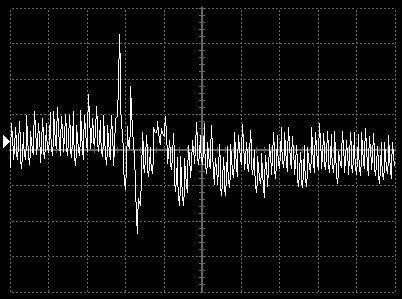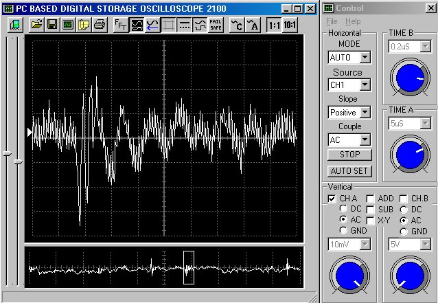 Empfindlichkeit pro Bildschirmteilung: 10 Millivolt (im Bild Vertical CH.A, Einstellung AC).