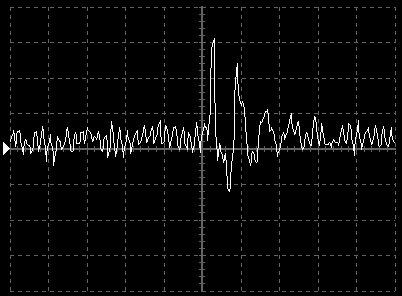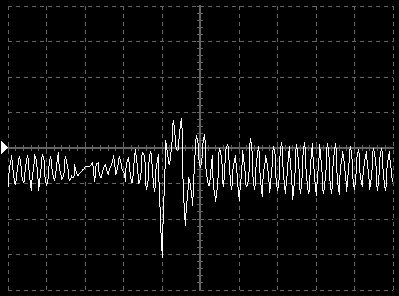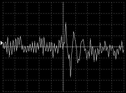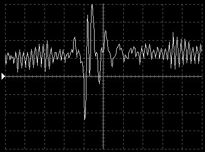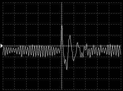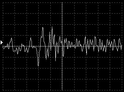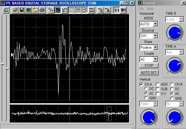 Empfindlichkeit pro Bildschirmteilung: 10 Millivolt (im Bild Vertical CH.A, Einstellung AC).