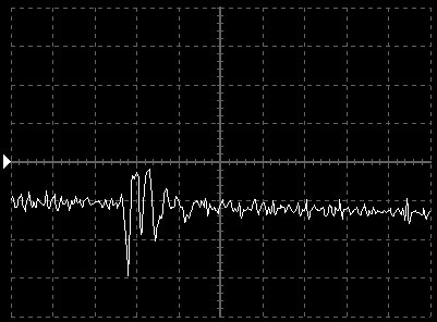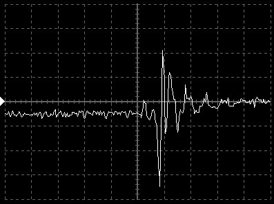 Empfindlichkeit pro Bildschirmteilung: 10 Millivolt (im Bild Vertical CH.A, Einstellung AC).