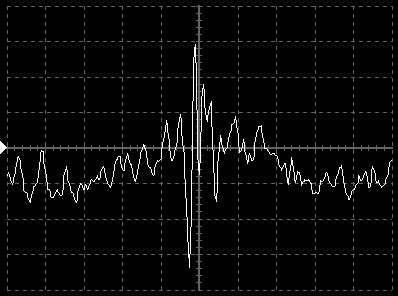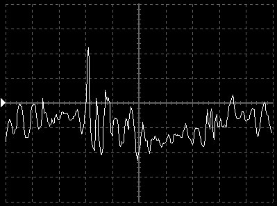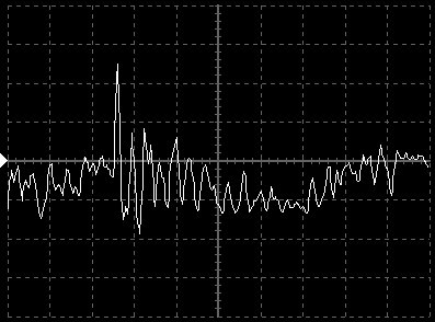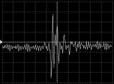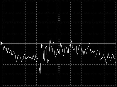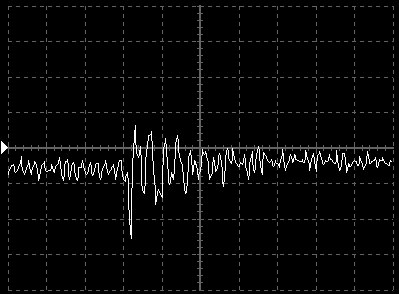 Empfindlichkeit pro Bildschirmteilung: 10 Millivolt (im Bild Vertical CH.A, Einstellung AC).