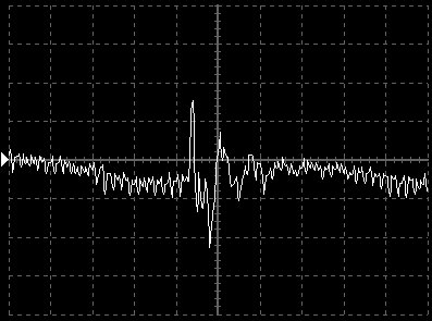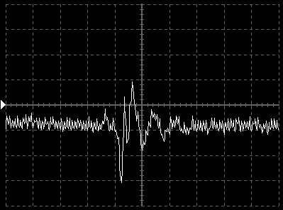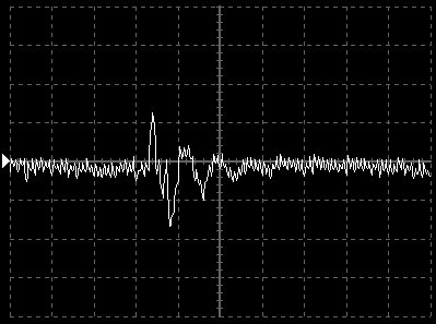 Empfindlichkeit pro Bildschirmteilung: 10 Millivolt (im Bild Vertical CH.A, Einstellung AC).