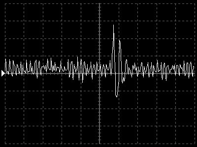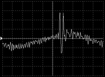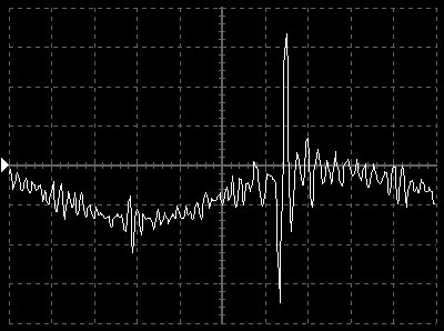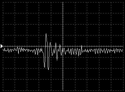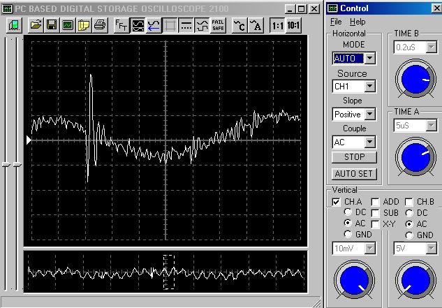 Empfindlichkeit pro Bildschirmteilung: 10 Millivolt (im Bild Vertical CH.A, Einstellung AC).
