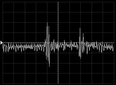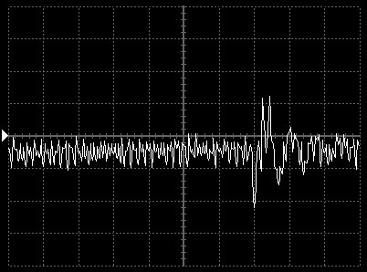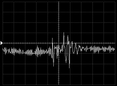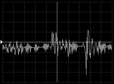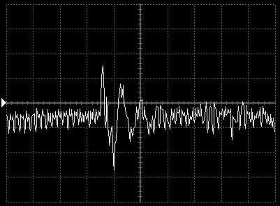 Empfindlichkeit pro Bildschirmteilung: 10 Millivolt (im Bild Vertical CH.A, Einstellung AC).