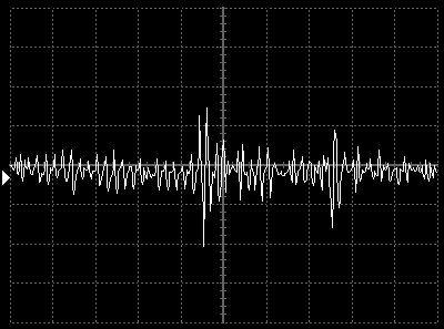 Außerdem konnten wir andere Signale folgender Art messen, die sich von den üblicherweise messbaren Signalen unterscheiden. Wegen der zu geringen Auflösung des von uns verwendeten Oszilloskops ist es schwierig die Übereinstimmung der verschiedenen Signale festzustellen.