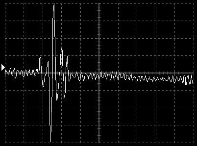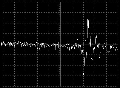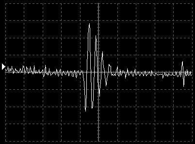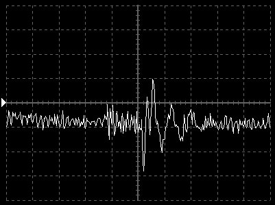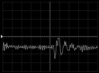 Empfindlichkeit pro Bildschirmteilung: 10 Millivolt (im Bild Vertical CH.A, Einstellung AC).