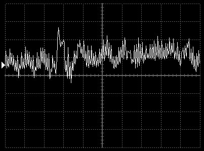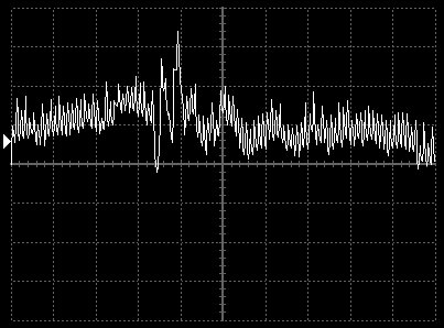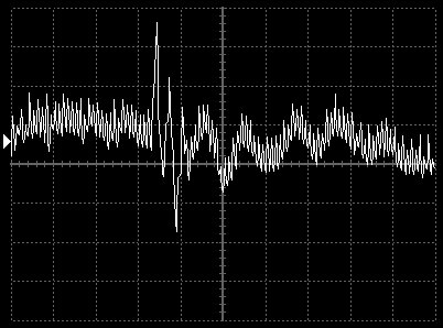Empfindlichkeit pro Bildschirmteilung: 10 Millivolt (im Bild Vertical CH.A, Einstellung AC).