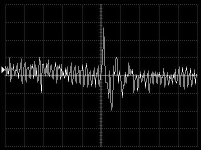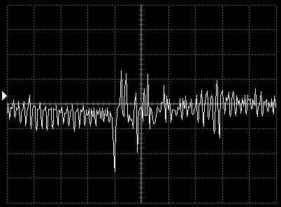 Empfindlichkeit pro Bildschirmteilung: 10 Millivolt (im Bild Vertical CH.A, Einstellung AC).
