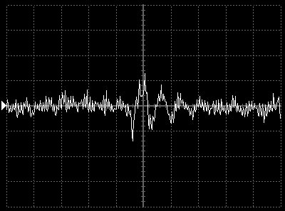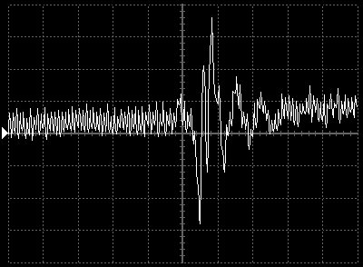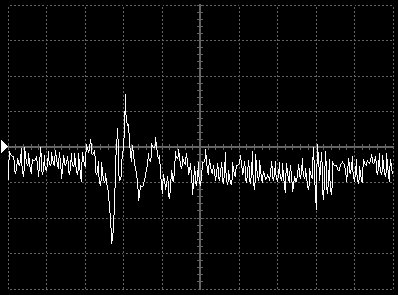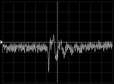 Empfindlichkeit pro Bildschirmteilung: 10 Millivolt (im Bild Vertical CH.A, Einstellung AC).