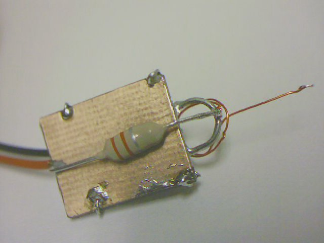 Nun wird der Silberdraht zur halbkreisförmigen Spule (Durchmesser 6-7 mm) gebogen. Danach wird die Spule angelötet.
