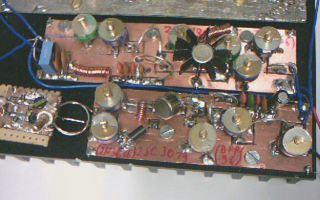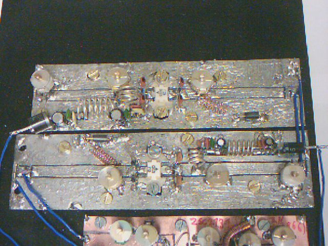 Zwei Endstufen mit je einem 2SC 3021 (unten) und 2SC 2695 (oben).