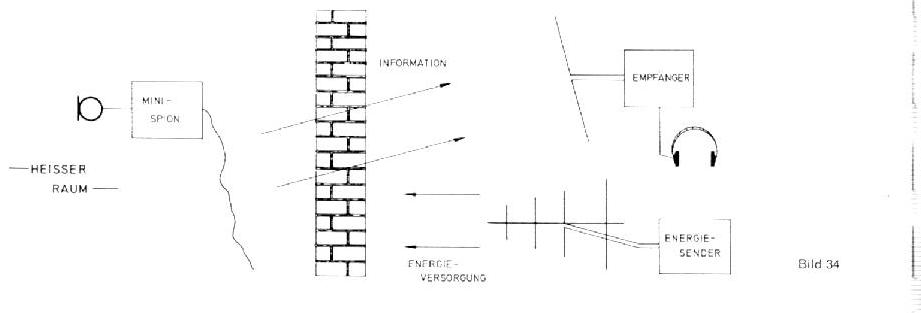 Abhörsender können auch drahtlos mit Energie versorgt werden. Ein starker Sender wird auf das Abhörgerät gerichtet, welches diese Energie empfängt und damit den Sender betreibt.