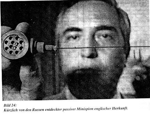 Abhörgeräte werden im Handel für sehr viel Geld angeboten, obwohl sie oft nur aus wenigen Bauteilen bestehen, die man für 2-3 DM kaufen kann. Jeder kann diese Bauteile selber zusammenbauen. So kann man unter Umständen davon ausgehen, daß die Tarnfirmen der Geheimdienste jeweils eine eigene technische Abteilung haben, oder diese Geräte von interessierten Geheimdienstlern in Heimarbeit hergestellt werden. So brauchen diese Geräte nicht auf dem Markt beschafft werden. Wenn ein solches Gerät gefunden wird, kann die Herkunft aus diesem Grund natürlich nicht festgestellt werden. Ein wichtiger Aspekt, wenn man Geheimdienstaktionen plausibel abstreiten will (plausible denial, wie der Amerikaner sagt).